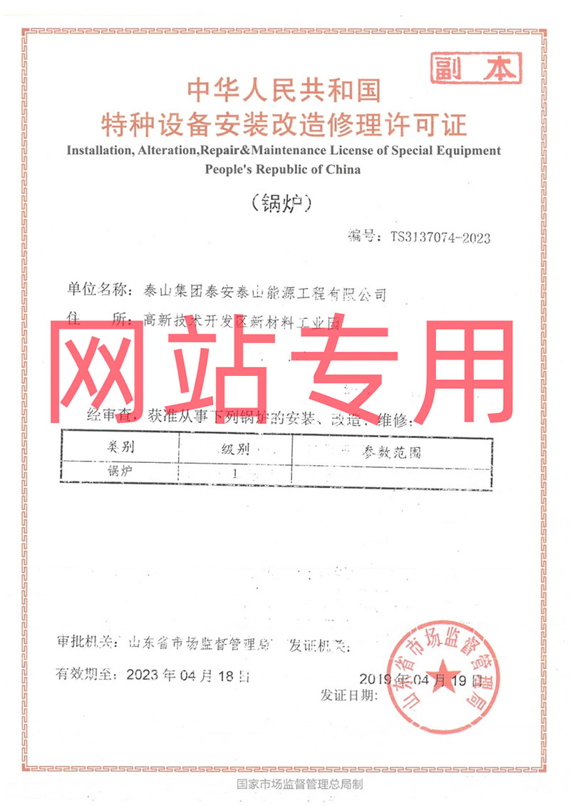 特種設(shè)備安裝改造維修許可證(鍋爐1級)